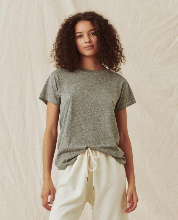 This perfect tee is a bit more narrow and a touch longer than our classic boxy crew. It is straight through the body and has all the softness and detailing of a timeless vintage tee.