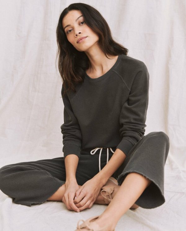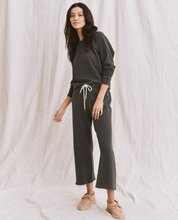 The Great. The Wide Leg Cropped Sweatpant. Washed Black | Women Sweatpants